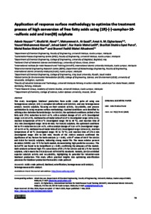 Hayyan, Adeeb and Abed, Khalid M. and Al-Saadi, Mohammed A. and Elgharbawy, Amal A.M. (2025) Application of response surface methodology to optimize the treatment process of high conversion of free fatty acids using (1R)-(-)-camphor-10-sulfonic acid and iron(III) sulphate. HEMIJSKA INDUSTRIJA (Chemical Industry), 78 (2). pp. 79-90. ISSN 0367-598X E-ISSN 2217-7426