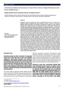 Abdullah Kamil, Najiyya and Ahmad, Norfaezah and Ahmad, Norhidayah (2025) University students and excessive screen time: links to sleep disturbance and acute health issues. International Journal of Allied Health Sciences, 9 (Supp. 3). pp. 19-28. E-ISSN 2600-8491