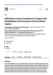 Osman, Mohamad Afwan and Zainul Azlan, Norsinnira and Suwarno, Iswanto and Samewoi, Abdul Rahman and Kamarudzaman, Norhaslinda (2025) Self-motion control exoskeleton for upper limb rehabilitation with perceptron neuron motion capture. International Journal of Robotics and Control Systems, 5 (1). pp. 500-515. E-ISSN 2775-2658