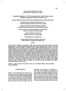information that is valuable in guiding treatment plans, determining the appropriate levels of stroke severity, and identifying areas where interventions are needed to improve a patient’s functional ability. However, the current manual method for assessing stroke patients in occupational therapy is subjective and inconsistent, as it relies on the therapist’s individual expertise and experience. To address this issue, this paper presents a pilot study on a quantitative measure of Functional Ability Index (FAI) utilising activities of daily living (ADL) based on the Motor Activity Log (MAL) clinical assessment. The Pearson correlation technique is implemented to measure the relationship between variables and normalisation function is adopted for stroke patient’s FAI estimation to describe their capability. Ten ADLs from MAL assessment have been selected for this study. Data on force exerted, arm movement, equipment motion during ADLs, and the time duration to execute the ADL task have been collected from 30 healthy subjects and 56 stroke patients. Sensors of force, IMU, encoder, and distance have been employed for this purpose. The estimated FAI’s are then compared to the manually scored given by the therapists. The results indicate that the highest achieved accuracy is 77% for the ADL ‘Fan Regulator’. These results demonstrate the feasibility of the method for establishing a quantitative measure of FAI.