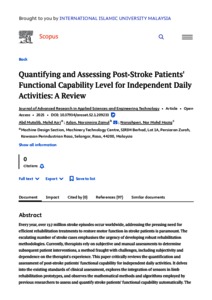Abd Mutalib, Mohd Azri and Zainul Azlan, Norsinnira and Norsahperi, Nor Mohd Haziq (2025) Quantifying and assessing post-stroke patients' functional capability level for independent daily activities: a review. Journal of Advanced Research in Applied Sciences and Engineering Technology, 52 (1). pp. 209-233. E-ISSN 2462-1943