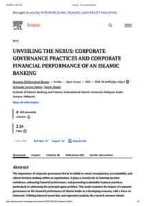 Unveiling the nexus: corporate governance practices and corporate financial performance of an Islamic banking.