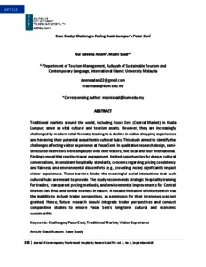 Traditional markets around the world, including Pasar Seni (Central Market) in Kuala Lumpur, serve as vital cultural and tourism assets. However, they are increasingly challenged by modern retail formats, leading to a decline in visitor shopping experiences and hindering their potential as authentic cultural hubs. This study aimed to identify the challenges affecting visitor experience at Pasar Seni. In qualitative research design, semi- structured interviews were employed with nine visitors, five local and four international. Findings reveal that reactive trader engagement, limited opportunities for deeper cultural conversations, inconsistent hospitality standards, concerns regarding pricing consistency and fairness, and environmental discomforts (e.g., crowding, noise) significantly impact visitor experiences. These barriers hinder the meaningful social interactions that such cultural hubs are meant to provide. The study recommends strategic hospitality training for traders, transparent pricing methods, and environmental improvements for Central Market Sdn. Bhd. and similar markets in nature. A notable limitation of this research was the inability to include trader perspectives, as permission for their interviews was not granted. Hence, future research should integrate trader perspectives and conduct comparative studies to ensure Pasar Seni's long-term cultural and economic sustainability.