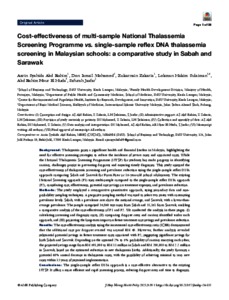 Abd Rahim, Azrin Syahida and Mohamed, Don Ismail and Zakaria, Zukarnain and Sulaiman, Lokman Hakim and Abd. Rahim, Nour El Huda and Jaafar, Safurah (2025) Cost-effectiveness of multi-sample National Thalassemia Screening Programme vs. single-sample reflex DNA thalassemia screening in Malaysian schools: a comparative study in Sabah and Sarawak. Journal of Hospital Management and Health Policy, 9 (December 30, 2025). pp. 1-20. E-ISSN 2523-2533