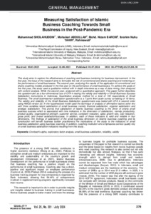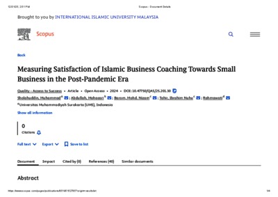 Sholahuddin, Muhammad and Abdullah, MohaAsri and Barom, Mohd. Nizam and Tahir, Ibrahim Nuhu and Rahmawati, Rahmawati (2024) Measuring satisfaction of Islamic business coaching towards small business in the post-pandemic era. Quality - Access to Success, 25 (201). pp. 278-285. ISSN 1582-2559