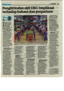 | Uncontrolled Keywords: | Sijil UEC, bahasa dan perpaduan, SIjil Peperiksaan Berspadu (UEC), pendidikan Malaysia |