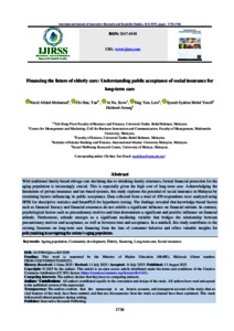 Mohamad, Nurul Afidah and Tan, Chi Hau and Seow, Ai Na and Looi, Sing Yan and Mohd Yusoff, Syarah Syahira and Awang, Halimah (2025) Financing the future of elderly care: understanding public acceptance of social insurance for long-term care. International Journal of Innovative Research and Scientific Studies, 8 (5). pp. 1736-1746. E-ISSN 2617-6548