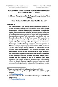 A Relevance Theory Approach to the Pragmatic Interpretation of Surah Al-Mulk Pendekatan Teori Relevan terhadap Interpretasi Pragmatik Surah al-Mulk