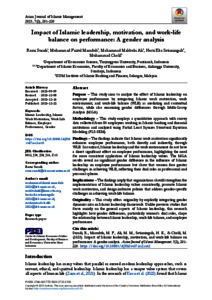 Impact of Islamic leadership, motivation, and work-life balance on performance: a gender analysis.
