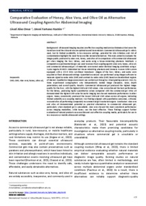 Omar, Linati Aina and Hashim, Ummi Farhana (2025) Comparative evaluation of honey, aloe vera, and olive oil as alternative ultrasound coupling agents for abdominal imaging. International Journal of Allied Health Sciences, 9 (Supp 3). pp. 435-441. E-ISSN 2600-8491
