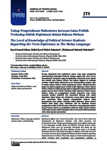 Syed Mohd Suhaimi, Syed Ismail Idlan Aidid and Suhaimi, Mohamad Suhaizi (2025) Tahap pengetahuan mahasiswa jurusan Sains Politik terhadap istilah diplomasi dalam Bahasa Melayu. Journal of Techno-Social, 17 (2). pp. 24-34. ISSN 2229-8940 E-ISSN 2600-7940