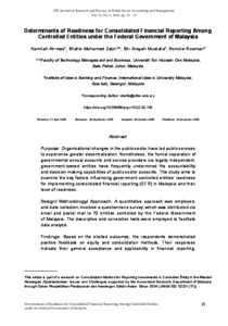 Determinants of readiness for consolidated financial reporting among controlled entities under the federal government of Malaysia.