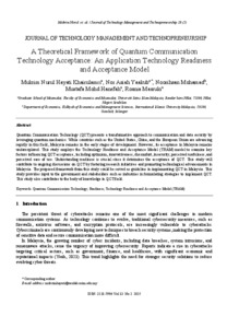 Khairulamri, Mukrim Nurul Hayati and Yaakub, Nor Asiah and Mohamad, Noorihsan and Mohd Hanefah, Mustafa and Masruki, Rosnia (2025) A theoretical framework of Quantum Communication Technology acceptance: an application technology readiness and acceptance model. Journal of Technology Management and Technopreneurship, 13 (2). pp. 1-18. ISSN 2231-7996 E-ISSN 2289-8158