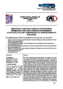 Mohamed Azmin, Nor Fadhillah and Mat Isa, Che Maznah and Oh, Chai Lian and Asnawi, Ani Liza (2025) Implementation of complex engineering problems (CEP) and complex engineering activities (CEA) of undergraduate programmes in Malaysia. International Journal of Modern Education, 7 (24). pp. 532-546. E-ISSN 2637-0905
