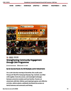 Abd Karim, Nur Qurratul Nusrah and Mohd Fauzie, Nur Siti Khadeejah and Karim, Fatimah (2025) Strengthening community engagement through SAA programme. IIUM Today, NA (NA). NA-NA.