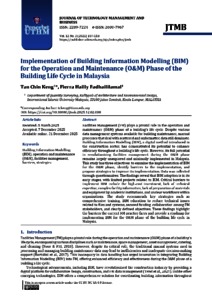 Tan, Chin Keng and Fadhaililamal, Fierra Hailly (2025) Implementation of building information modelling (BIM) for the operation and maintenance (O&M) phase of the building life cycle in Malaysia. Journal of Technology Management and Business, 12 (2). pp. 107-118. ISSN 2289-7224 E-ISSN 2600-7967