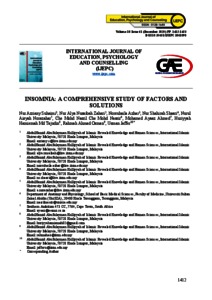 Suhaimi, Nur Azriany and Zahari, Nur Alya Nusaibah and Azhar, Norsuhaila and Shaari, Nur Shahirah and Norazahar, Nurul Aisyah and Che Mohd Nassir, Che Mohd Nasril and Ahmed, Mohamed Ayaaz and Md Tajudin, Huriyyah Hamiemah and Ahmad H. Osman, Rahmah and Jaffer, Usman (2025) Insomnia: a comprehensive study of factors and solutions. International Journal of Education, Psychology and Counselling, 10 (61). pp. 1412-1423. E-ISSN 0128-164X