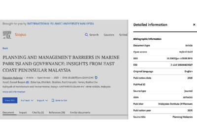 Yusof, Zeenat Begam and Zakariya, Khalilah and Ibrahim, Putri Haryati and Che Haron, Roziha (2025) Planning and management barriers in marine park island governance: insights from east coast peninsular Malaysia. Planning Malaysia, 23 (6). pp. 841-856. ISSN 1675-6215 E-ISSN 0128-0945