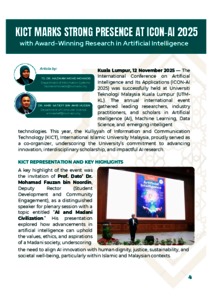 Mohadis, Hazwani Mohd and Amir Hussin, Amir 'Aatieff (2025) KICT marks strong presence at ICON-AI 2025 with award-winning research in rrtificial intelligence. KICT Newsletter: Spectrum, November 2025 (10). pp. 4-6. E-ISSN 3083-9904
