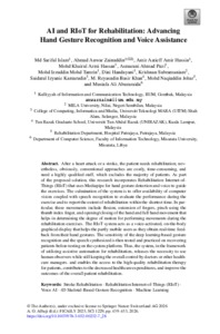 BIN ZAINUDDIN, AHMAD ANWAR and Amir Hussin, Amir 'Aatieff and Hassan, Mohd Khairul Azmi and Handayani, Dini Oktarina Dwi and Mohd Tamrin, Mohd Izzuddin and Ahmad Puzi, Asmarani (2026) AI and RIoT for rehabilitation: advancing hand gesture recognition and voice assistance. In: First International Conference on Generative AI: Current Research, Industry Trends, and Innovations (FICAI2025), LIBYA.