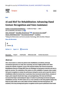 Islam, Md Sariful and Zainuddin, Ahmad Anwar and Amir Hussin, Amir 'Aatieff and Hassan, Mohd Khairul Azmi and Ahmad Puzi, Asmarani and Mohd Tamrin, Mohd Izzuddin and Handayani, Dini Oktarina Dwi and Subramaniam, Krishnan and Kamarudin, Saidatul Izyanie and Basir Khan, M. Reyasudin and Johar, Mohd Naqiuddin and Abuzaraida, Mustafa Ali (2026) AI and RIoT for rehabilitation: advancing hand gesture recognition and voice assistance. In: 1st International Conference on Generative AI: Current Research, Industry Trends, and Innovations (FICAILY 2025), 2nd January 2026, Tripoli, Libya.