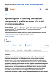 Lin, Galvin Sim Siang and Foong, Chan Choong and Mohd Noor, Mohamad Nabil and Cabatan, Maria Concepcion (2026) A practical guide to reporting appraisal and transparency in qualitative research in health professions education. Discover Education, 5 (16). pp. 1-11. E-ISSN 2731-5525