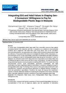 | Uncontrolled Keywords: | ESG Integration, Halal Values, Gen-Z, Biodegradable Plastic Bags, Consumer Willingness to Pay |