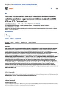 Mohamad Alwi, Muhammad Ammar and Ahmad, Mohammad Norazmi and Kayed, Safa Faris and Dzulkifli, Nur Nadia and Abu Samah, Mohd Armi and Pauzi, Hariy and Abdullah, Erna Normaya (2026) Structural elucidation of a novel dual-substituted thiosemicarbazone scaffold as an efficient copper corrosion inhibitor: Insights from RSM, XPS, and DFT–Fukui analyses. Journal of Molecular Structure, 1356 (145021). pp. 1-26. ISSN 0022-2860