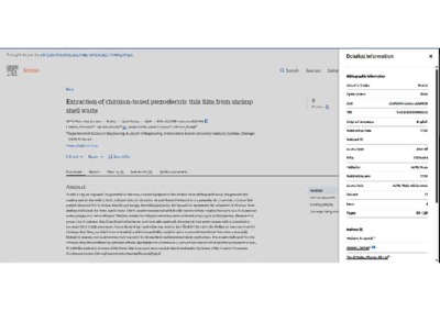 Uncontrolled Keywords: extraction, chitosan, shrimp shell, piezoelectric, thin film