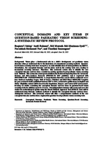 Rahmat, Baqiatu’l Sabiqi ‘Assfi and Md Mustafa, Md Muziman Syah and Mohamed Nor, Noraishah and Sanmugam, Thashini (2025) Conceptual domains and key items in question-based paediatric vision screening: a systematic review protocol. Suranaree Journal of Science and Technology, 32 (6). pp. 1-7. ISSN 0858-849X E-ISSN 2587-0009