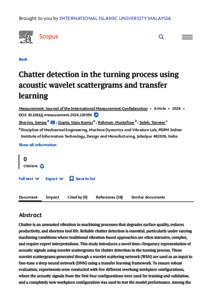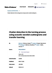 Sharma, Sanjay and Gupta, Vijay Kumar and Rahman, Mustafizur and Saleh, Tanveer (2026) Chatter detection in the turning process using acoustic wavelet scattergrams and transfer learning. Measurement: Journal of the International Measurement Confederation, 265 (NA). pp. 1-10. ISSN 0263-2241 E-ISSN 1873-412X