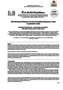 Mohd Aris, Mohd Shukri and Zainal Abidin, Ainul Naqueah and Razali, Ailin and Ismail, Norazura and Fuente, Adrian (2021) Solvent-induced hearing loss from occupational exposure in Asia: a systematic review. Environment-Behaviour Proceedings Journal, 6 (17). pp. 125-133. E-ISSN 2398-4287