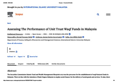 Mohd Nasarudin, Ahmad Fawwaz and Azrai Azaimi Ambrose, Azniza Hartini and Mohd Safee, Aini Afifah (2026) Assessing the performance of unit trust waqf funds in Malaysia. Intellectual Discourse, 34 (1 Special Issue). pp. 27-42. ISSN 0128-4878 E-ISSN 2289-5639