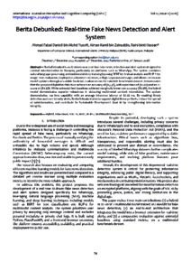 Mohd Yusof, Ahmad Faisal Daniell and Zainuddin, Aiman Kamal and Hassan, Raini (2026) Berita Debunked: real-time fake news detection and alert system. International Journal on Perceptive and Cognitive Computing, 12 (1). pp. 74-80. E-ISSN 2462-229X
