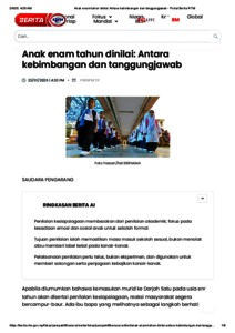 Abdul Ghani, Azril Shahreez and Ahmad, Anisa (2026) Anak enam tahun dinilai: antara kebimbangan dan tanggungjawab. Berita RTM, NA (NA). pp. 1-5.