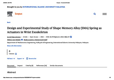 Wahid, Azni Nabela and Badarussamin, Muhammad Hadif (2026) Design and experimental study of Shape Memory Alloy (SMA) spring as actuators in wrist exoskeleton. Jurnal Kejuruteraan, 38 (1). pp. 455-463. ISSN 0128-0198 E-ISSN 2289-7526