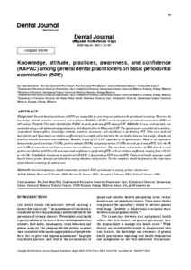 Mohd Noh, Nur Zety and Wan Ismail, Wan Nur Syamimie and Wan Maznan, Wan Nur Izzati and Mohamed Khazin, Sobrina and Ardini, Yunita Dewi (2026) Knowledge, attitude, practices, awareness, and confidence (KAPAC) among general dental practitioners on basic periodontal examination (BPE). Dental Journal (Majalah Kedokteran Gigi), 59 (1). pp. 33-40. ISSN 1978-3728 E-ISSN 2442-9740