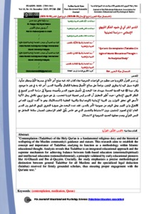 إن تدبر القرآن الكريم واجب عظيم من الواجبات الشرعية تجاه كتاب الله، فبه صلاح أمر الأمة في صدرها الأول وعظم شأنها، لكونه سبيل الهداية وطريقة اليقين، وباعثاً على صالح الأعمال ومجلبة للكمال. ولأهمية التدبر، أمر الله به في غير ما موضع، وكان نبينا صلى الله عليه وسلم فيه القدوة الحسنة، ويهدف هذا البحث إلى تأصيل مفهوم التدبر وأهميته، وصولاً إلى دراسة التدبر كمنهج في الفكر التربوي الإسلامي؛ حيث أظهر التحليل أن التدبر ليس فضيلة فردية فحسب، بل هو منهج تربوي تكاملي يمثل الآلية الأسمى التي تحقق التوازن بين التربية الإيمانية (الوجدانية) والتربية العقلية (الاستدلالية)، وهو ما أكده المربون القدامى كالغزالي وابن القيم. وعلى الرغم من عمومية الأمر بالتدبر، فقدد شدد البحث على ضرورة التفريق المنهجي الدقيق بين التدبر العام المباح لعموم المسلمين، وبين الاستنباط والتفسير الذي هو خاص بأولى العلم الراسخين، لضمان سلامة التعامل مع النص القرآني وعدم مجاوزة الحدود الشرعية في الاستدلال. ***** Contemplation (Tadabbur) of the Holy Qur'an is a fundamental religious duty and the historical wellspring of the Muslim community's guidance and stature. This research aims to establish the concept and importance of Tadabbur, studying its function as a methodology within Islamic educational thought. Analysis reveals that Tadabbur is an integrated educational approach and the supreme mechanism for achieving balance between faith-based education (emotional/spiritual) and intellectual education (rational/inferential), a principle validated by early educational pioneers like Al-Ghazali and Ibn al-Qayyim. Crucially, the study emphasizes a precise methodological distinction between general Tadabbur for all Muslims and the specialized legal deduction (Istinbat) reserved for firmly grounded scholars, thus ensuring proper engagement with the Qur'anic text.