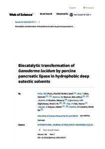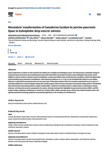 Syed Putra, Sharifah Shahira and Alias, Yatimah and Basirun, Wan Jefrey and Ibrahim, Mastura and Elgharbawy, Amal A.M. and Tola, Hasna and Hayyan, Adeeb and Hashim, Mohd Ali (2026) Biocatalytic transformation of Ganoderma lucidum by porcine pancreatic lipase in hydrophobic deep eutectic solvents. International Journal of Biological Macromolecules, 340 (NA). pp. 1-16. ISSN 0141-8130 E-ISSN 1879-0003