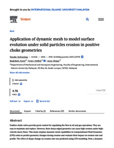 Baghdadi, Faical and Hrairi, Meftah and Asrar, Waqar (2026) Application of dynamic mesh to model surface evolution under solid particles erosion in positive choke geometries. Powder Technology, 469 (1). pp. 1-15. ISSN 0032-5910 E-ISSN 1873-328X