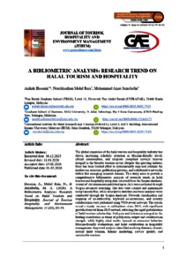 Hussain, Aishah and Mohd Rais, Noreldzaihan and Jamaludin, Mohammad Aizat (2026) A bibliometric analysis: research trend on halal tourism and hospitality. Journal of Tourism, Hospitality and Environment Management, 11 (43). pp. 1-19. E-ISSN 0128-178X