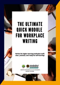 Mohd Basari, Shahrul Nizam and Ramdzan Ali, Al Amirul Eimer and Mohamad Ali, Afiza and Abdullah, Nur Nabilah and Sahar, Rafidah and Rashid Ali, Farrah Diebaa and Jaraih, Mohd Saifullah (2026) The ultimate quick module for workplace writing: perfect for higher learning institution staff: clear, practical, and ready for self-learning! KSTCL Press, Johor, Malaysia.