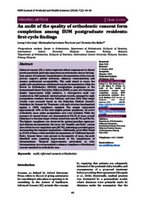 Leong, Yoke Ling and Tan, Lawrence Soon Lee and Abu Bakar, Noraini (2026) An audit of the quality of orthodontic consent form completion among IIUM postgraduate residents: first-cycle findings. IIUM Journal of Orofacial and Health Sciences, 7 (1). pp. 40-45.