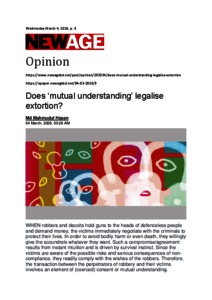 Hasan, Md. Mahmudul (2026) Does ‘mutual understanding’ legalise extortion? New Age, NA (NA). p. 9.