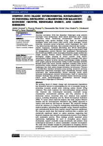 Qoyum, Abdul and Prasojo, Prasojo and Mohd Thas Thaker, Hassanudin and Hosen, Mosharrof and Hasanah, Imas (2025) Stepping into Islamic environmental sustainability in Indonesia: developing a framework for balancing economic growth, renewable energy, and carbon emissions. EKONOMIKA SYARIAH: Journal of Economic Studies, 9 (2). pp. 247-262. ISSN 2614-8173 E-ISSN 2614-8129