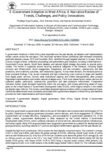 Adeleye, Dupe Ayesha and Ahlan, Abdul Rahman and Muhamad Ibrahim, Najhan (2026) E-government adoption in West Africa: a narrative review of trends, challenges, and policy innovations. INTERNATIONAL JOURNAL OF RESEARCH AND INNOVATION IN APPLIED SCIENCE (IJRIAS), 11 (2). pp. 775-793. ISSN 2454-6194