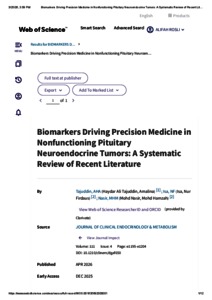 Haydar Ali Tajuddin, Amalina and Isa, Nur Firdaus and Mohd Nasir, Mohd Hamzah (2026) Biomarkers driving precision medicine in nonfunctioning pituitary neuroendocrine tumors: a systematic review of recent literature. The Journal of Clinical Endocrinology and Metabolism, 111 (4). e1195-e1204. ISSN 0021-972X E-ISSN 1945-7197