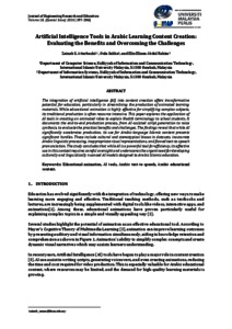 Mahmod Attar Bashi, Zainab Senan and Sakka, Oula and Abdul Rahim, Elin Eliana (2026) Artificial intelligence tools in Arabic learning content creation: evaluating the benefits and overcoming the challenges. Journal of Engineering Research and Education (JERE), 18 (Special Issue). pp. 197-206. ISSN 1823 - 2981 E-ISSN 2232 - 1098