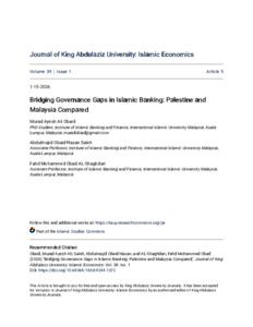 Ali Obaid, Murad Ayesh and Saleh, Abdulmajid Obaid Hasan and Al-Shaghdari, Fahd Mohammed Obad (2026) Bridging governance gaps in Islamic banking: Palestine and Malaysia compared. Journal of King Abdulaziz University: Islamic Economics, 39 (1). pp. 63-77. ISSN 1018-7383 E-ISSN 1658-4244