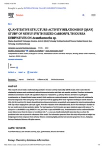 Ibrahim, Maizatul Akma and Zakaria, Nor Hafizah and Mohd Yusof, Mohd Sukeri (2022) Quantitative structure-activity relationship (qsar) study of newly synthesized carbonyl thiourea derivatives on acanthamoeba sp. Malaysian Journal of Analytical Sciences, 26 (3). pp. 457-477. ISSN 1394-2506
